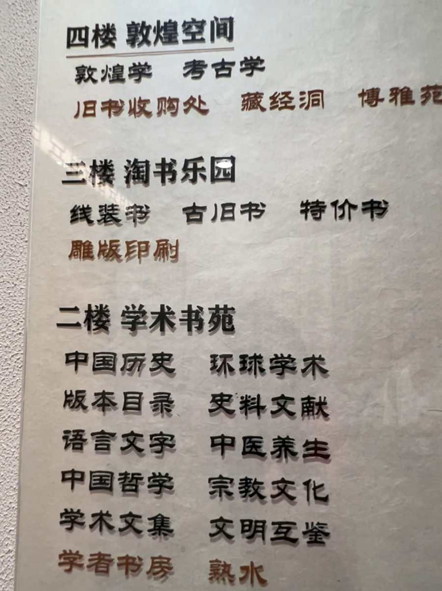 书店既有按经、史、子、集分类陈列旧版线装书的“博古斋”,又有汇集旧书的“淘书乐园”,还有定期开张的周末特色旧书市集。